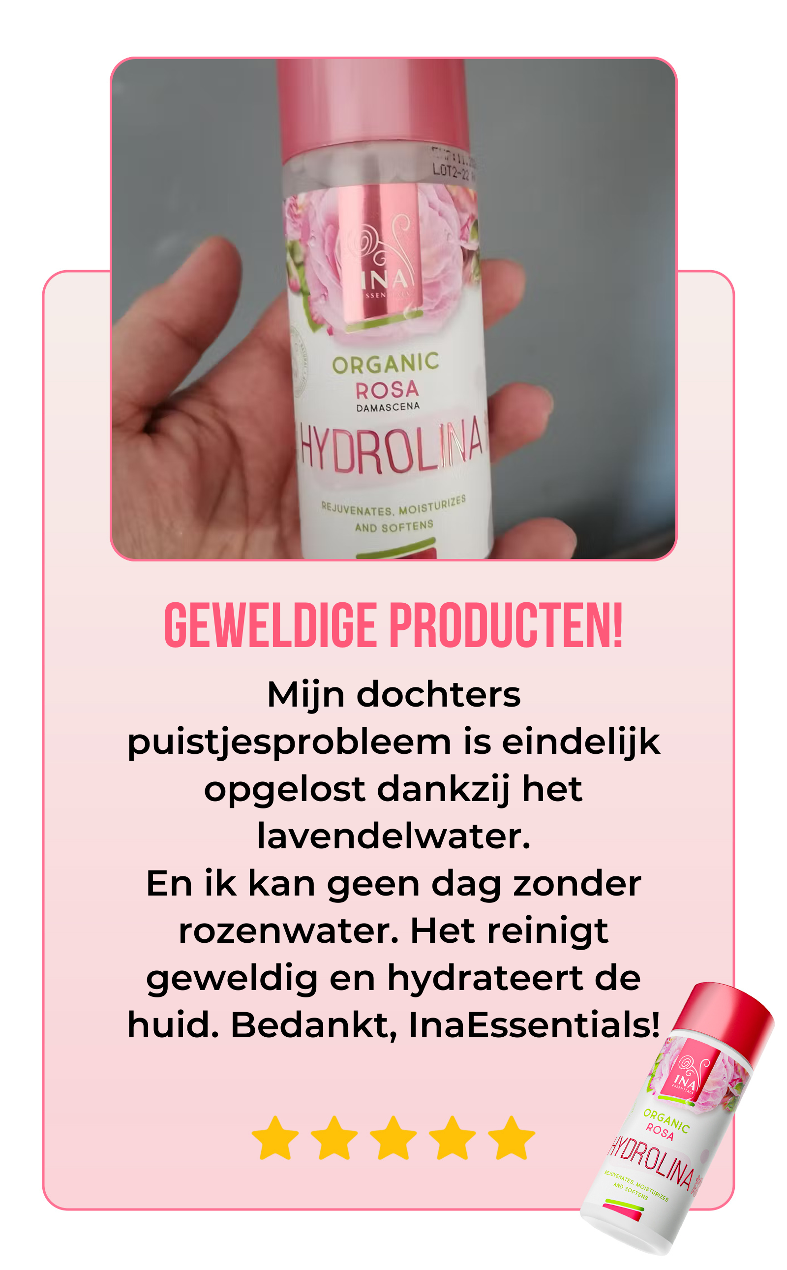Nu dit ontdekt en de lavendelwater gebruikt en ik ben zo tevreden!!!!