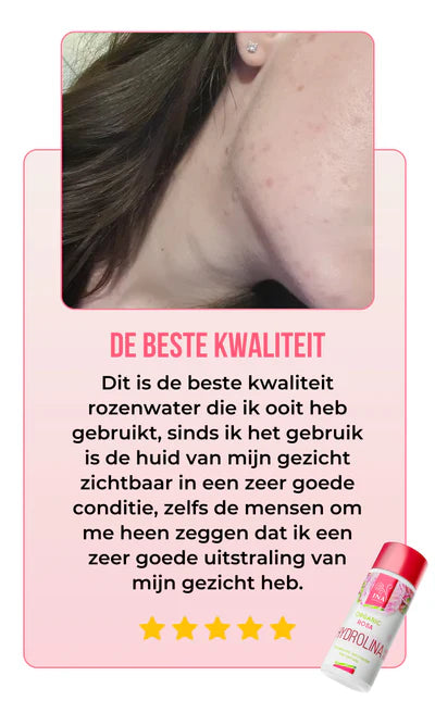 - Stap 2: Breng vervolgens onze 100% Biologische Rozenwater - Hydrolina aan.