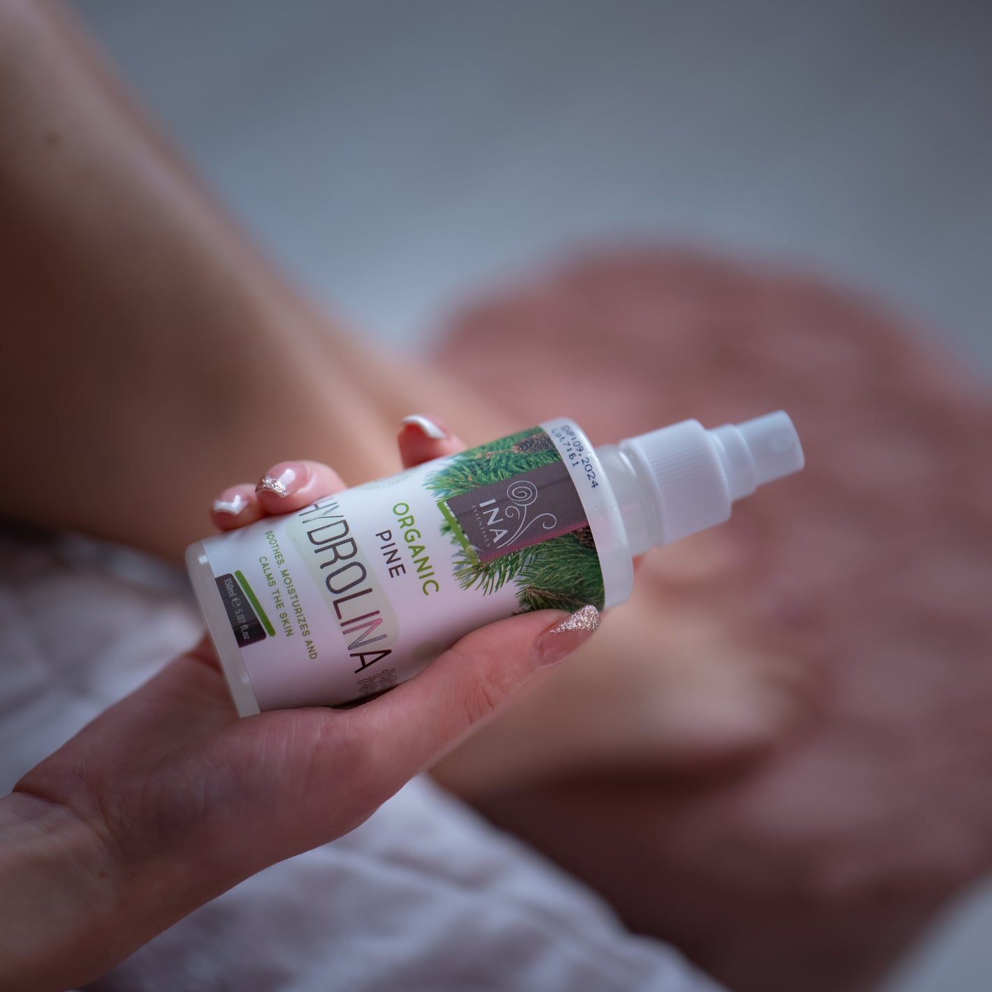 Voor optimale resultaten, spray Witte Dennenwater Hydrolina 1-2 keer per dag rechtstreeks op het aangetaste gebied, vooral voor het slapengaan.