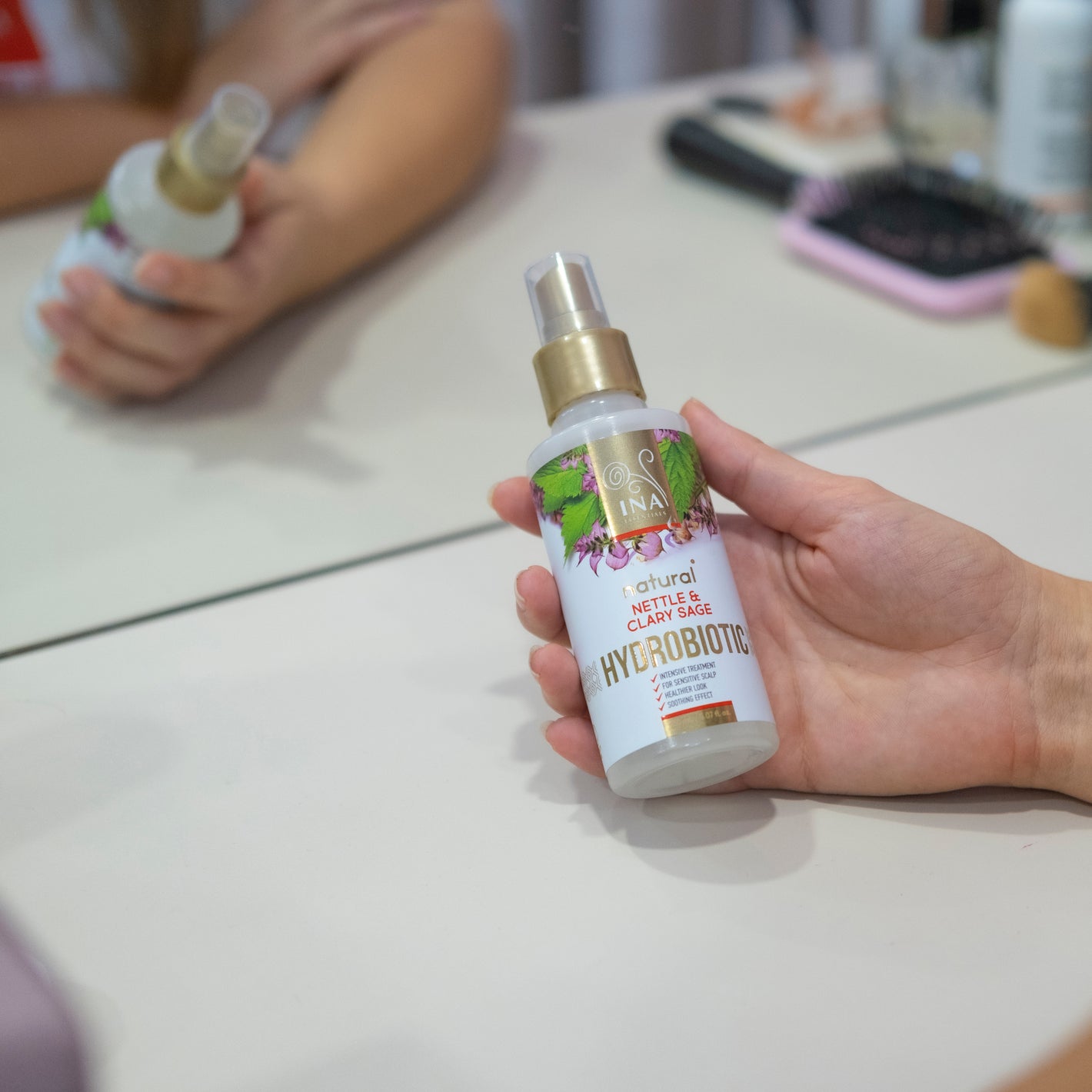 Voor een optimaal resultaat, spray Hydrobiotic - Brandnetel en Salie in de aanzet en lengten van het haar voor het slapengaan. Geschikt voor gebruik elke nacht.