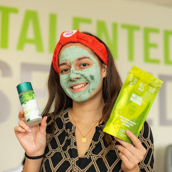 Meng 1 eetlepel van het poeder met een gecontroleerde hoeveelheid InaEssentials Citroenmelissewater tot er een smeerbaar mengsel ontstaat.